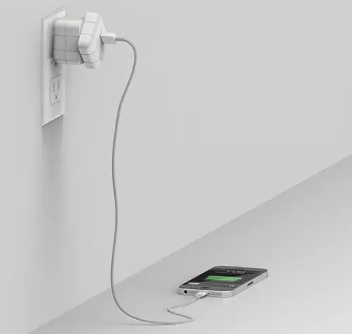 這款插頭類似一個(gè)魔方,表面分成9塊,每塊下面都有一個(gè)LED燈。給手機(jī)充電時(shí),可通過(guò)LED燈來(lái)判斷充電進(jìn)展:亮2個(gè)燈代表已充電10%,5個(gè)燈代表已充電50%,全亮則已充滿。而當(dāng)它充滿時(shí),魔方會(huì)45度旋轉(zhuǎn),切斷電源,讓充電更安全。